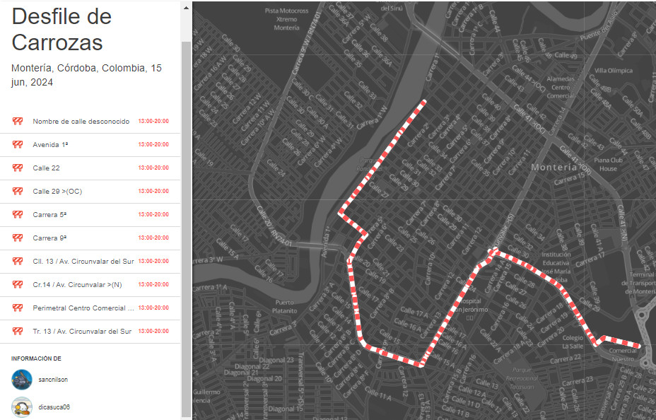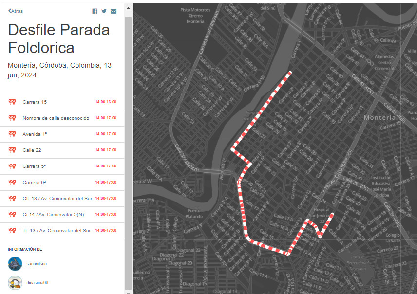Se programan cierres viales este 13, 14 y 15 de Junio de 2024 en la ciudad de Montería- Córdoba con ayuda de @sancnilson, Por motivo de los desfiles Parada Folclórica, Parada Folclórica Infantil y Desfile de Carrozas en el marco de la Feria Ganadera,