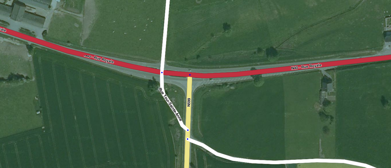 - Nepotrebne spojeve dva segmenta koji tvore istu cestu brišeš tako da prvo klikneš na točku spoja i nakon toga klikneš na ikonu koša za smeće. To će obrisati spoj, ali će umjesto njega ostaviti lom segmenta. Ukoliko taj lom nije potreban, pogledaj prethodnu stavku da vidiš kako ga ukloniti.