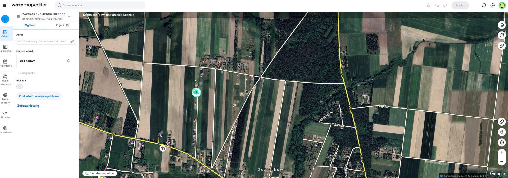 Gdy wpisuje Zdziechów 48H to i tak przeskakuje miejsce docelowe na Zdziechów 48. Mimo, że w edycji mapy mój adres widnieje. Może to ktoś poprawić? Województwo Łódzkie, gmina Lutomiersk