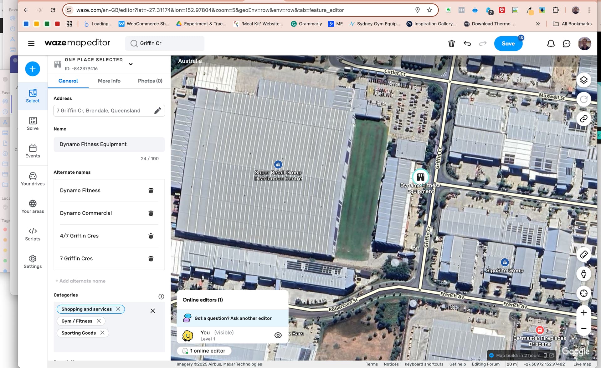 We’ve opened a new gym equipment store in Brendale but customers are reporting issues using Waze to get there.