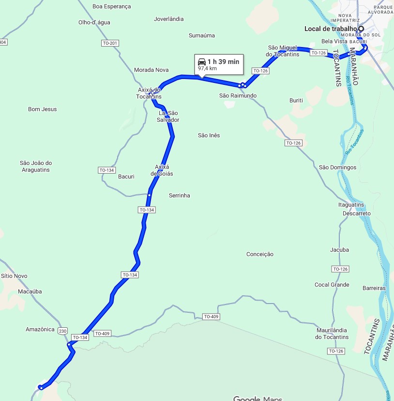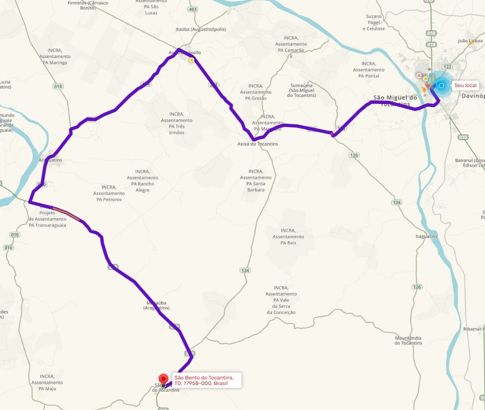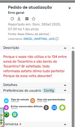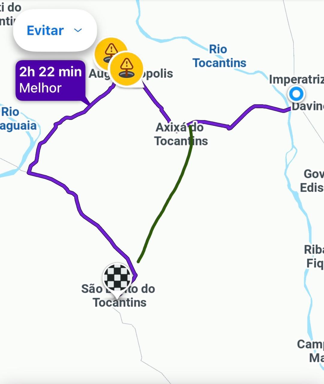Pessoal, preciso de ajuda para desenrolar esse trajeto que apareceu por essa UR. “Porque o waze não utiliza a to 134 entre axixá do Tocantins e são bento do Tocantins? Br asfaltada, todo reformada asfalto ótimo tudo perfeito! Porque da essa volta absurda?”