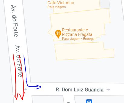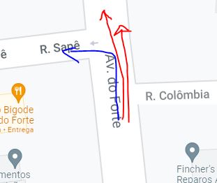 Av do Forte esquina com Sape. 2 faixas para seguir reto. 1 faixa para dobrar a esquerda