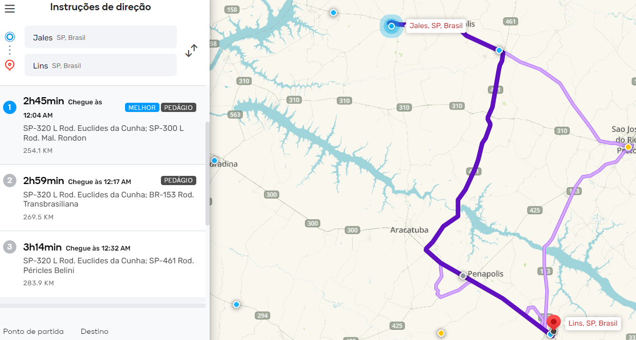 O que vejo, posso estar errado é claro, é a preferência do servidor de rotas em utilizar a vias federais (a SP-461 da cidade de Monções passando por Votuporanga também é a BR-154) em rotas acima de 200km.