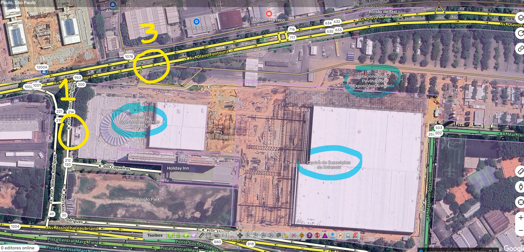 - Adicionarei o local “Distrito Anhembi” ao Expo Pavilhões - assim o usuário do Waze que buscar esta opção deverá ser levado ao mesmo ponto de entrada na Av. Olavo Fontoura 1.209
