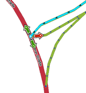 - Entfernen kreuzender Straßen resp. bearbeiten über- oder unterführender Straßen.