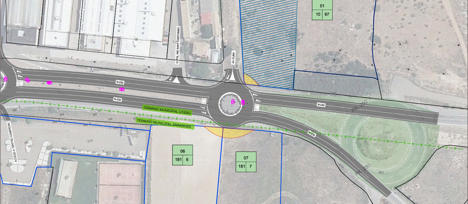 Obras integración urbana N-232a Utebo, se ha eliminado la rotonda, ahora son simples tramos rectos: