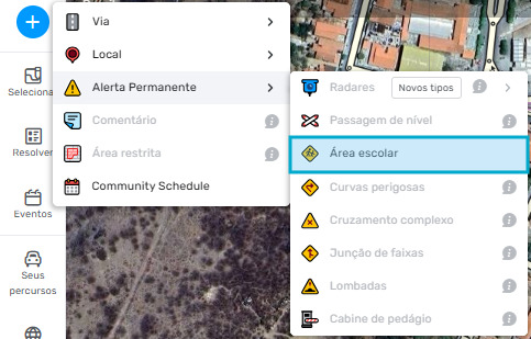 - Após habilitar a camada, selecione o tipo de alerta “Área Escolar”