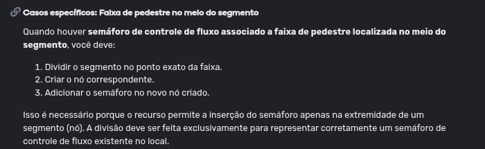 A orientação de quebrar o segmento vale apenas para casos específicos em que o semáforo de controle de fluxo esteja no meio do segmento, distante de qualquer cruzamento, normalmente associado a uma faixa de pedestres isolada.
