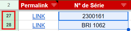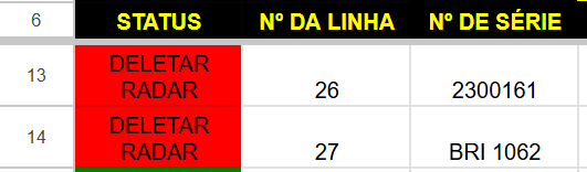 Existem casos que o Inmetro utiliza o mesmo nº de série, deste jeito facilita a planilha que apenas renova e o link cadastrado fica seguindo. Neste caso que você apontou são nº de séries diferentes. Neste caso você deve manter apenas o mais novo. Senão na aba “PERMALINK” vai ficar aparecendo o status de “DELETAR RADAR”. Para você apagar da matriz um radar, vá nesta mesma aba e na coluna de “OBSERVAÇÃO”, digita a palavra “APAGAR”. Lembre-se que só irá respeitar esse comando se o status estiver em vermelho, com o valor “DELETAR RADAR”. Caso tente fazer manualmente, sempre irá voltar.