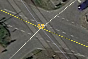 Bitte beachtet, dass sichergestellt ist, dass vor dem Passieren des Bahnübergangs in allen Straßen und in alle Fahrtrichtungen eine Warnung erzeugt wird, wenn wie im Beispiel der Bahnübergang in einer Kreuzung liegt. An solchen Stellen sind dann für jede Fahrtrichtung separate Warnungen einzutragen.