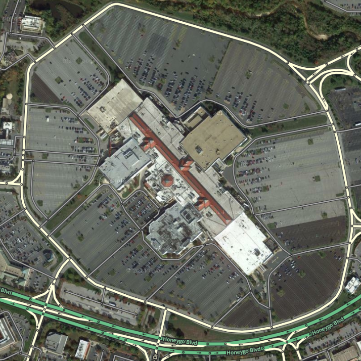 - Lanes at the edge of the lot which run alongside public roads (prevents Wazers in the parking area from “snapping” to the public road, and then sending incorrect speed information it)