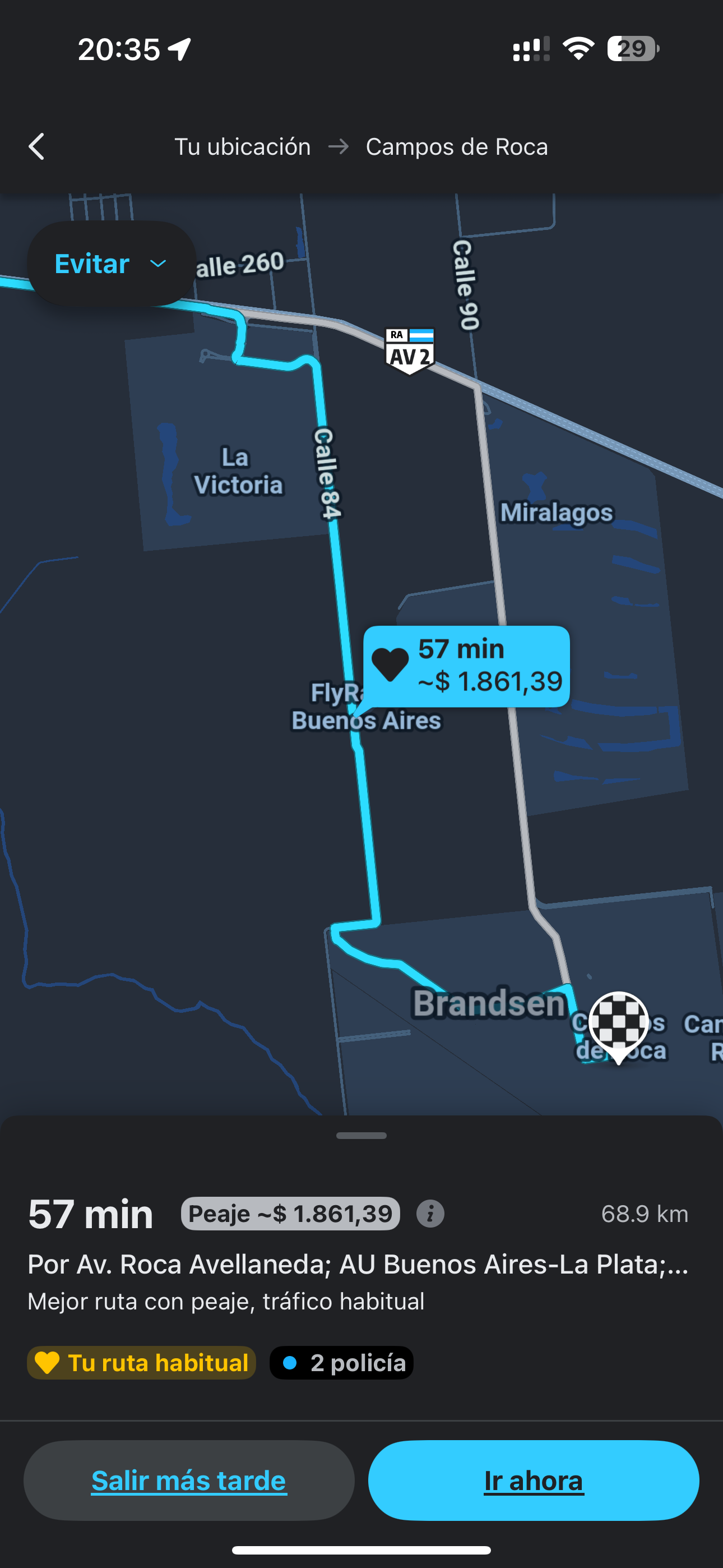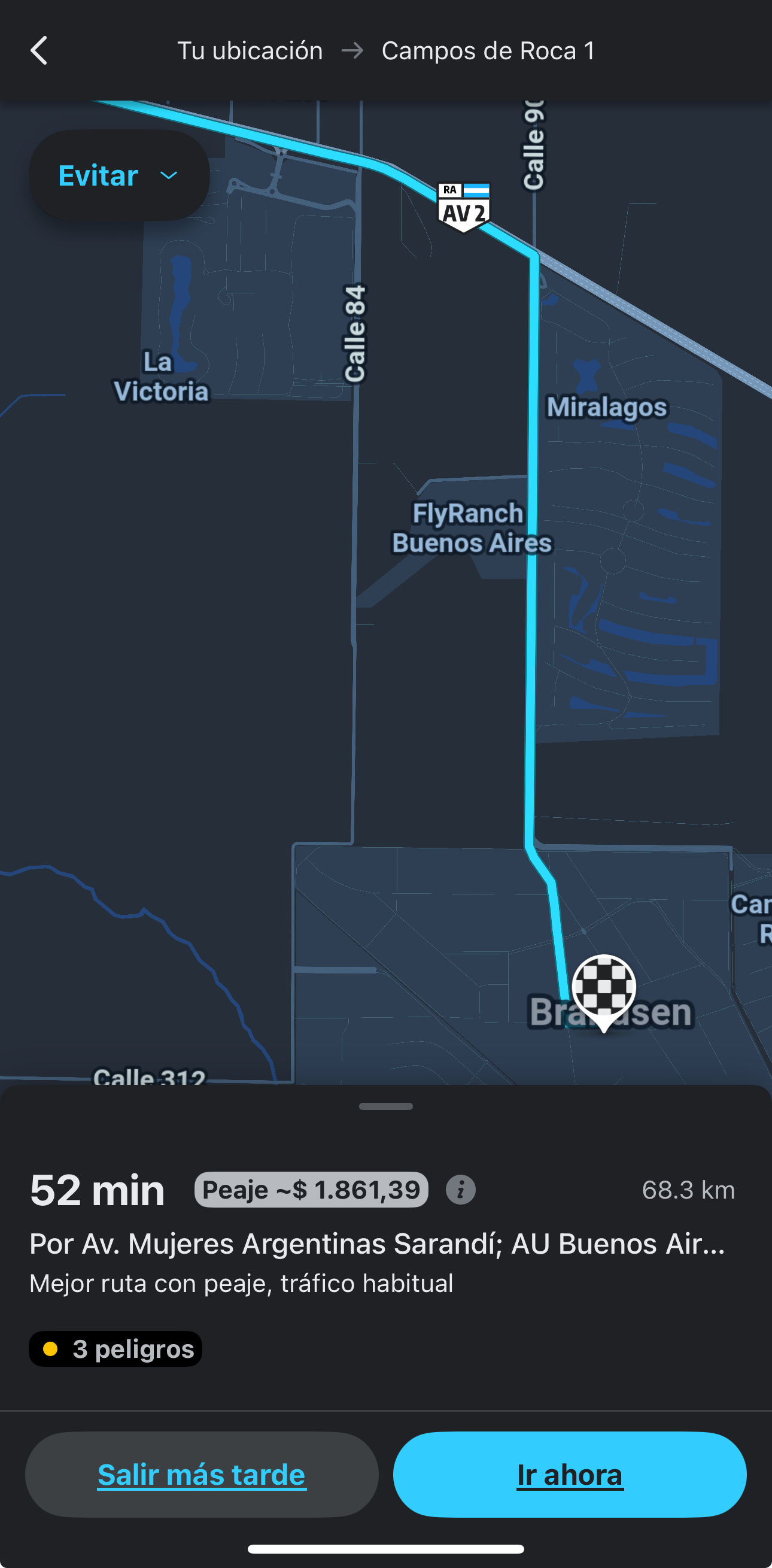 Ves, estones lo que digo, ahora me da solo esta opcion sin poder elegir ruta alternativa , fijate en la que subi anterior que tenia el otro ingreso y como opcion de ruta esta.