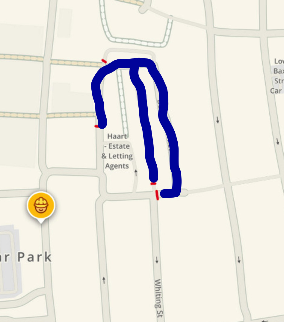 Thanks for posting, I can absolutely sort this for you. To clarify though, as your red marks are unclear, is it the roads I’ve marked in blue that are closed? If not, can you help me out with a bit more clarity?