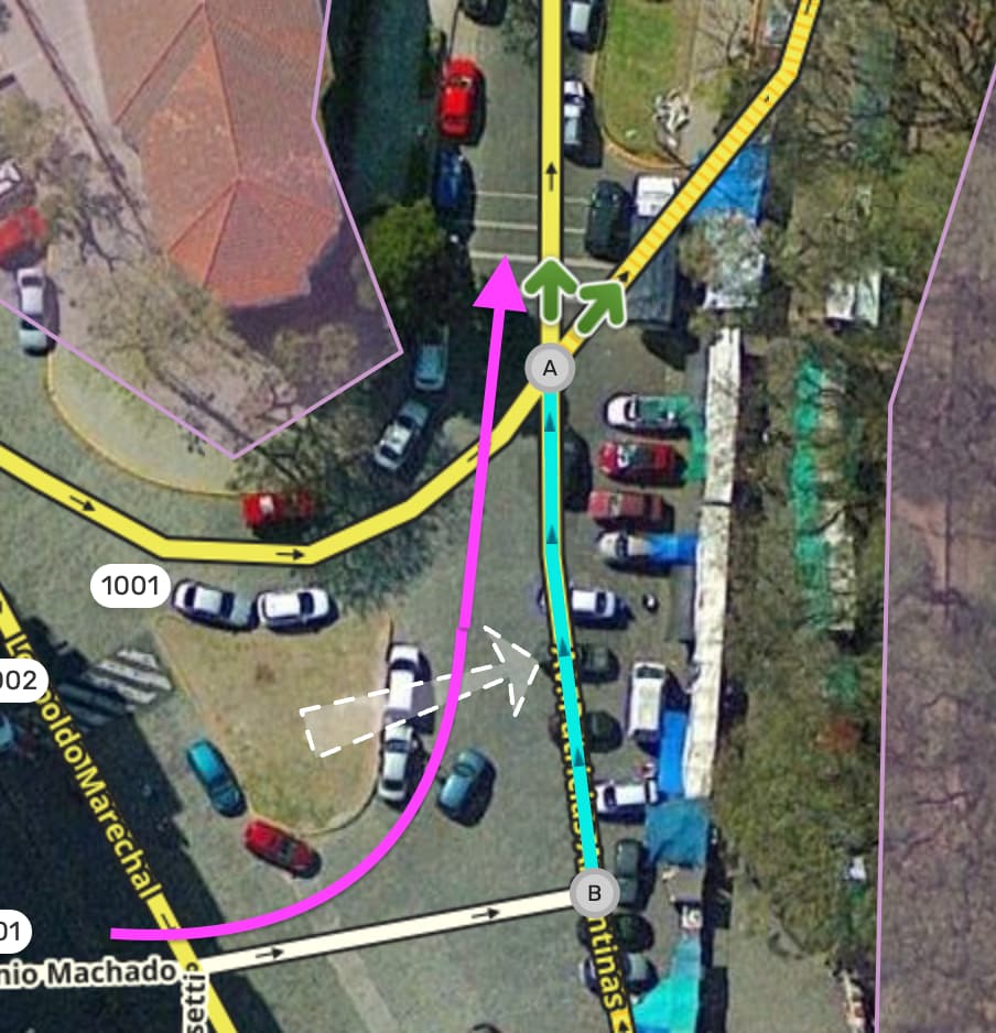 Este segmento de Patricias Argentinas no tiene restricciones. Siempre se puede venir por Antonio Machado y Doblar a la izquierda en Patricias Argentinas.