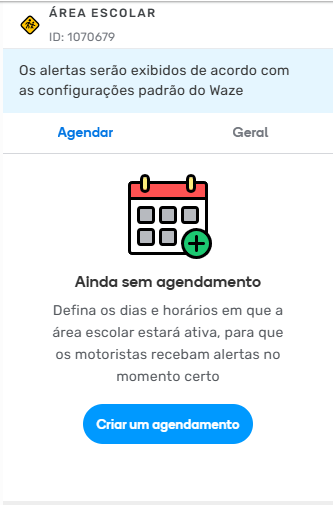O recurso Calendário de Agendamentos permite que os editores configurem agendamentos com dias e horários personalizados para alertas de área escolar, aumentando a segurança viária ao garantir que os alertas sejam ativados apenas nos momentos relevantes. Essa funcionalidade foi criada para alinhar a exibição dos alertas de área escolar com os horários reais de funcionamento das escolas, proporcionando uma experiência mais dinâmica e contextualizada para os usuários.