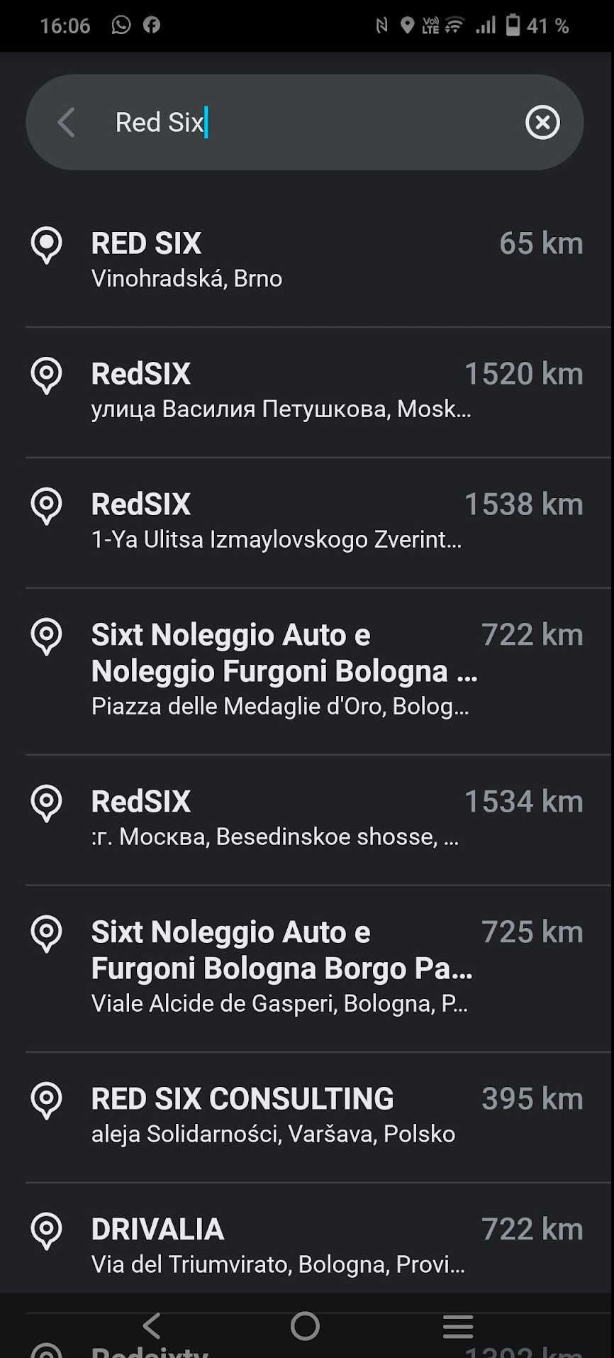Při navigaci do RED SIX na adrese Vinohradská 74, Brno Permalink je trasa vedená zezadu domu na této adrese přes parkoviště Phoenix, je to ale vedlejší areál oddělený plotem a k cíli se nelze dotaz.