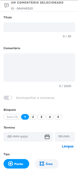 - O campo de título tem limite de 30 caracteres, então use um resumo claro do motivo do comentário.