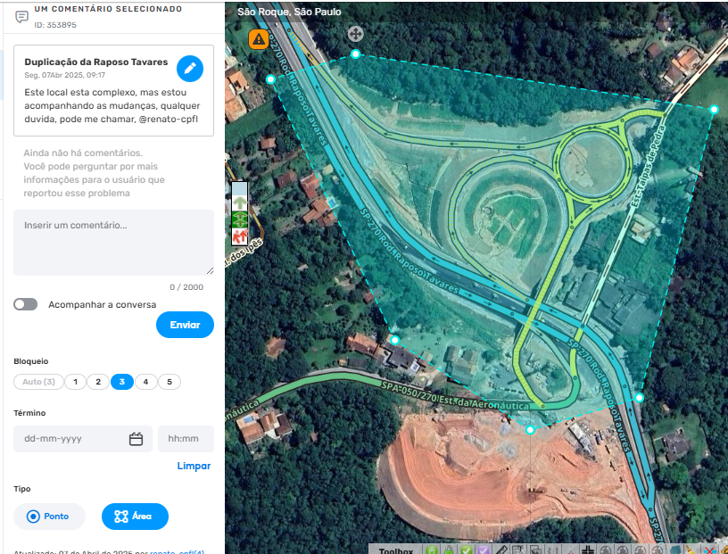 - Outros editores podem adicionar novas informações após a criação do comentário no mapa, e notificações serão enviadas ao criador da nota e a todos que marcarem a opção “Acompanhar a conversa”, de forma semelhante aos pedidos de atualização (URs).