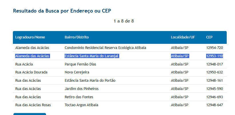 Este segmento tem o CEP 12954-720, já esta alocado à ele corretamente