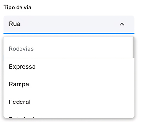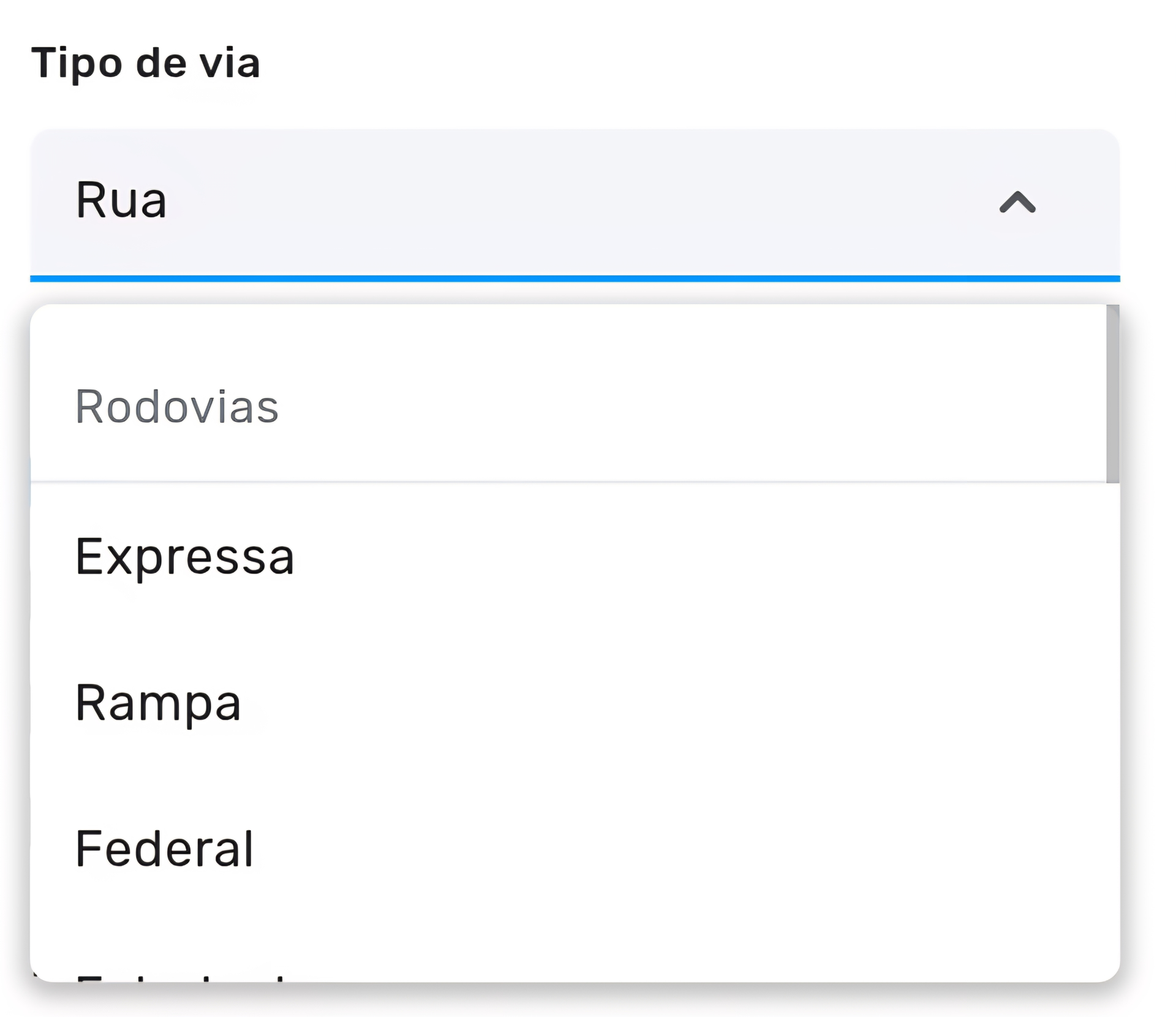 O tipo de via é alterado selecionando o tipo correspondente na caixa de seleção “dropdown”.