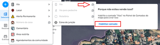 No menu de criação, clique em “Via”. Se a camada estiver desabilitada, clique em “Habilitar camada” para ativá-la.
