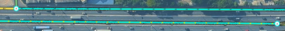 Caso você escolha A→B ou B→A, sempre que o segmento aparecer em azul claro por ter sido selecionado, pequenos triângulos em azul escuro serão desenhados ao longo do segmento indicando em qual sentido o tráfego atravessa aquele segmento.