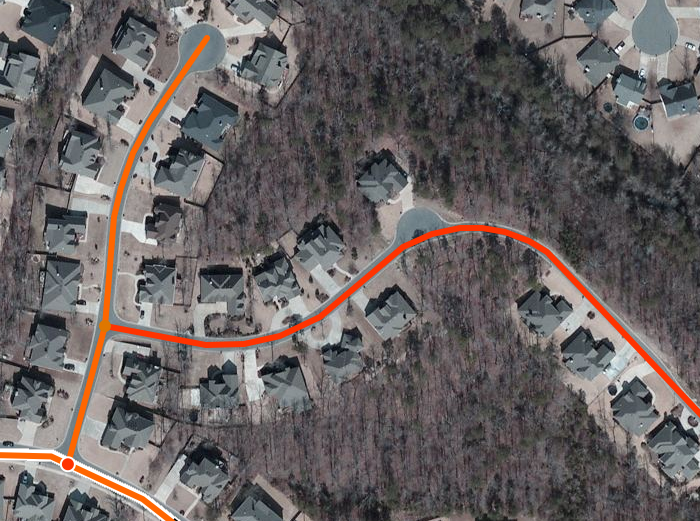 Ao desenhar uma rua que conecta o início e fim ao mesmo segmento, apenas a conexão final é criada. Para criar a conexão inicial: