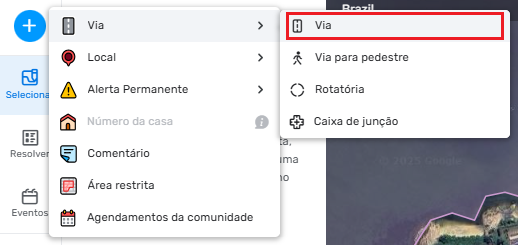 Se você encontrar uma via que não existe no mapa do Waze, siga os seguintes passos para adicionar essa via.