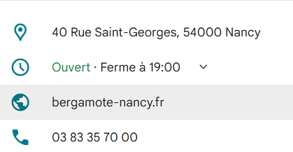Par ailleurs je vous conseille de modifier le site web dans maps car il ne correspond pas à ce que vous nous avez fourni ici.