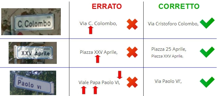 (*): per come editare correttamente il nome del comune o della frazione, vedere la guida specifica.