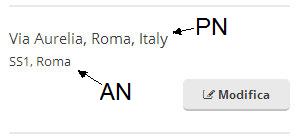 In caso di strada provinciale, regionale o statale all’interno di un centro abitato, oltre a valere esattamente quanto scritto sopra, si deve indicare in AN la sigla della stessa oppure, se esiste, l’eventuale nome completo: