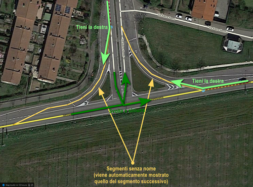 N.B. Si utilizza il simbolo > perché viene letto “Direzione” dal TTS (Text to speech) ed occupa meno spazio sullo schermo rispetto all’abbreviazione “Dir.” Attenzione! Il simbolo " > " va utilizzato ESCLUSIVAMENTE con segmenti di tipo Ramp!