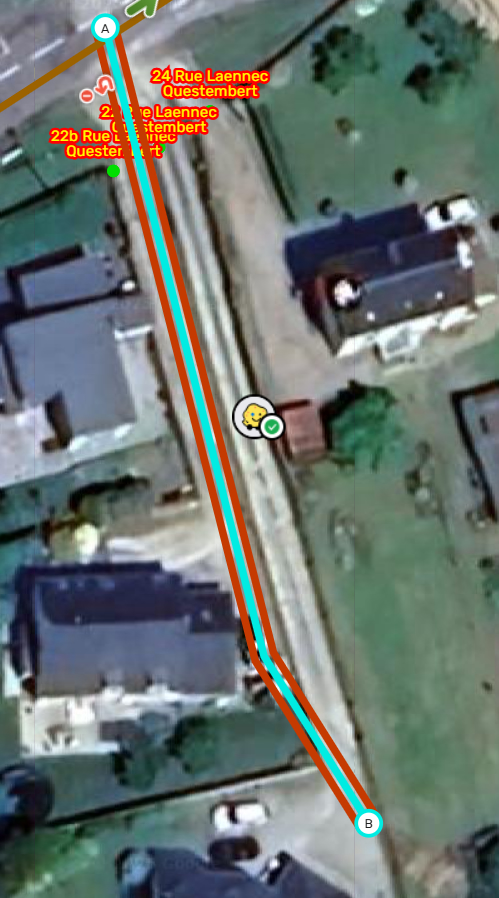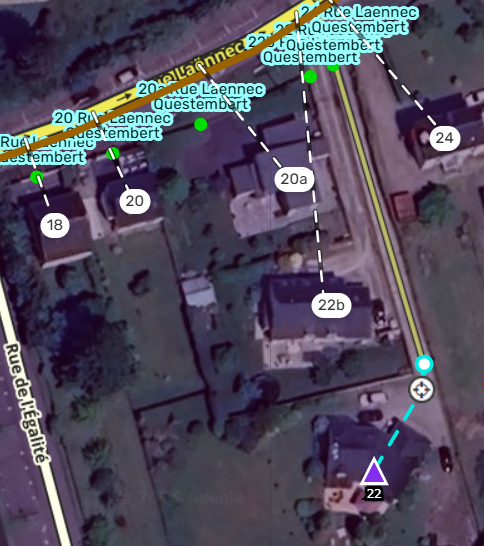 Actuellement le 22 est un résidentiel que j’ai mis à la fin de cette voie privée mais je peux mettre un numero classique au départ de ce segment sur Laennec ce sera aussi efficace. Les wazer seront juste envoyé à la boite aux lettres.
