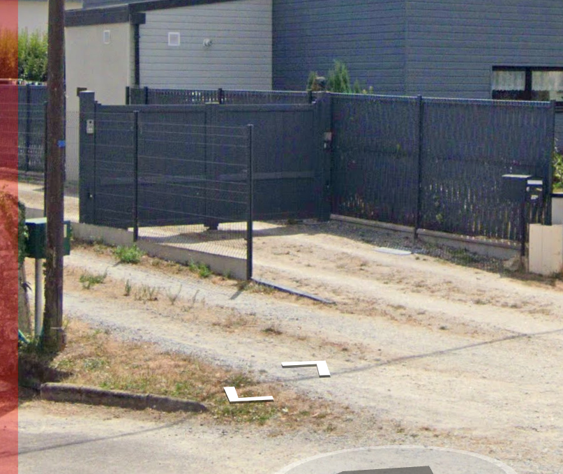 Actuellement, la rue se prolonge trop au sud dans une propriété privée (cf. capture d’écran ci-dessous).