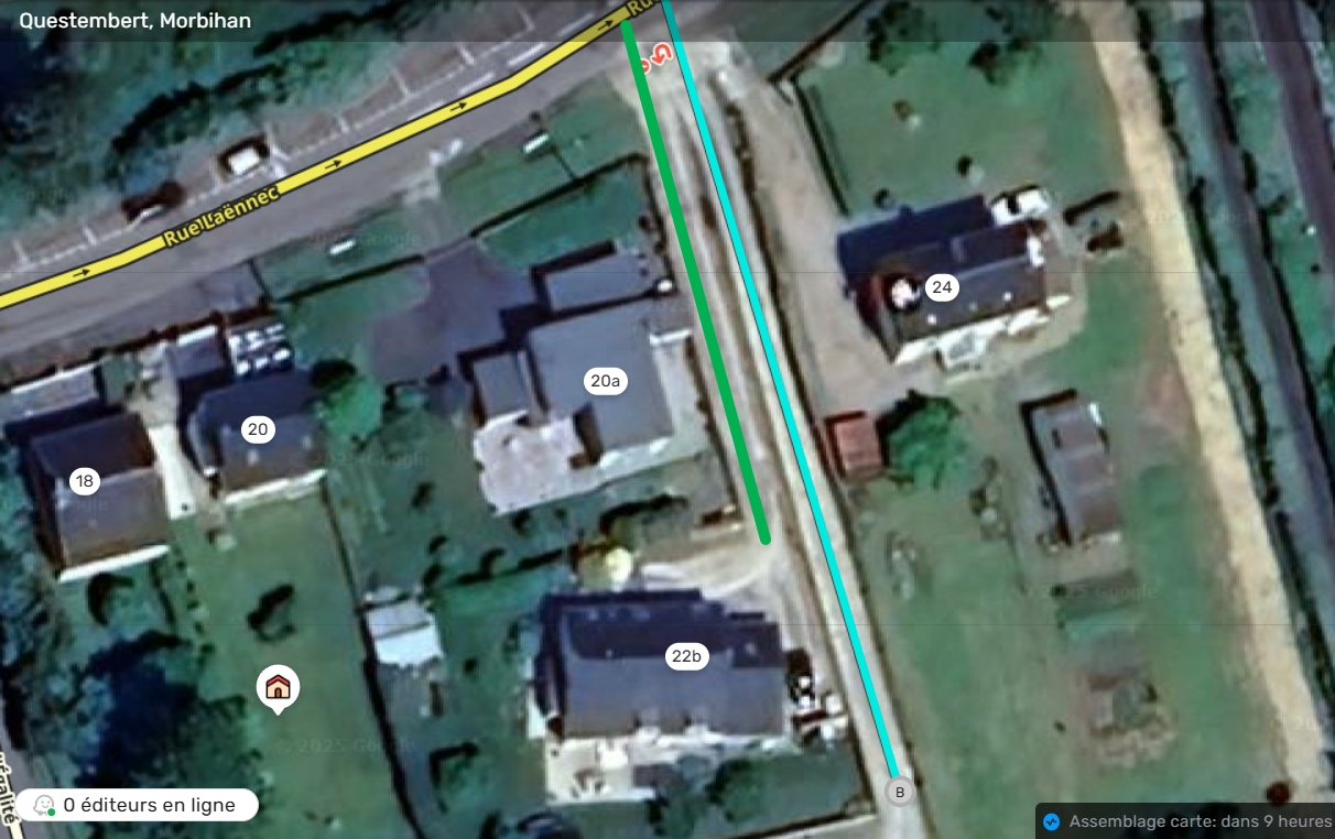Voulez vous que je supprime le segment qui va au 22 ? il ne sert à rien car c’est une voie privée utilisée pour une seule adresse.