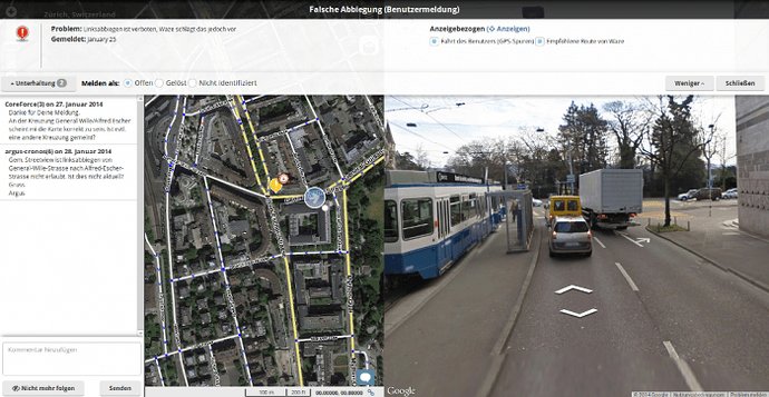 Darum zeigt Waze im Karteneditor nur die Streetview Bilder ohne zusätzliche Daten.