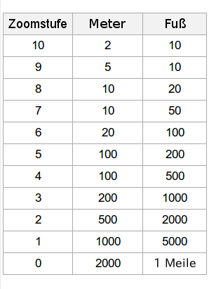 - In der linken Ecke die Skala des Zoom-Stufen.