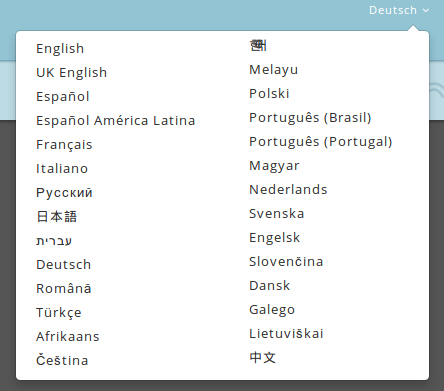 Die Sprachauswahl des Karteneditors befindet sich in der oberen, rechten Ecke der Haupt-Navigationsleiste