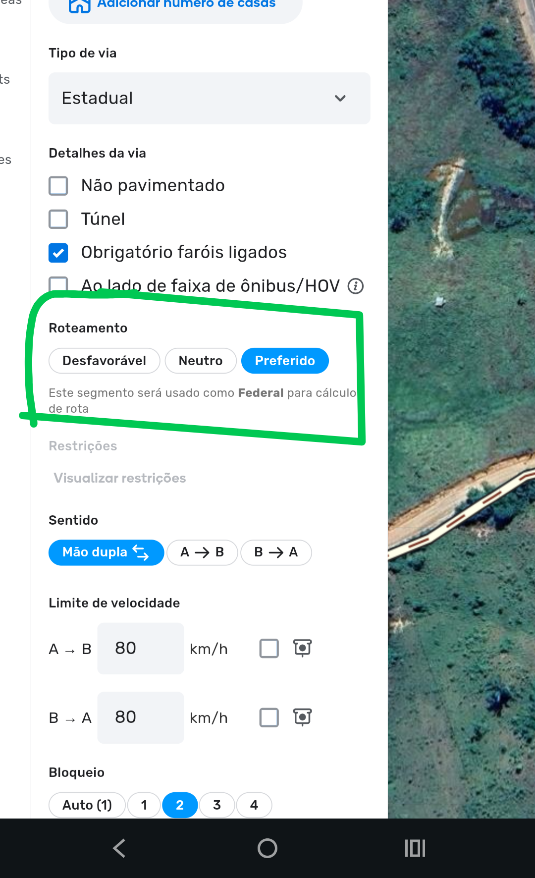 Na verdade o pedido é por ser um segmento sob nossa administração e, em caso de mudanças, já teríamos o desbloqueio para inserir novas informações. Há, por exemplo, um trecho indicado como sendo rodovia PA-150, mas é da rodovia PA-475.