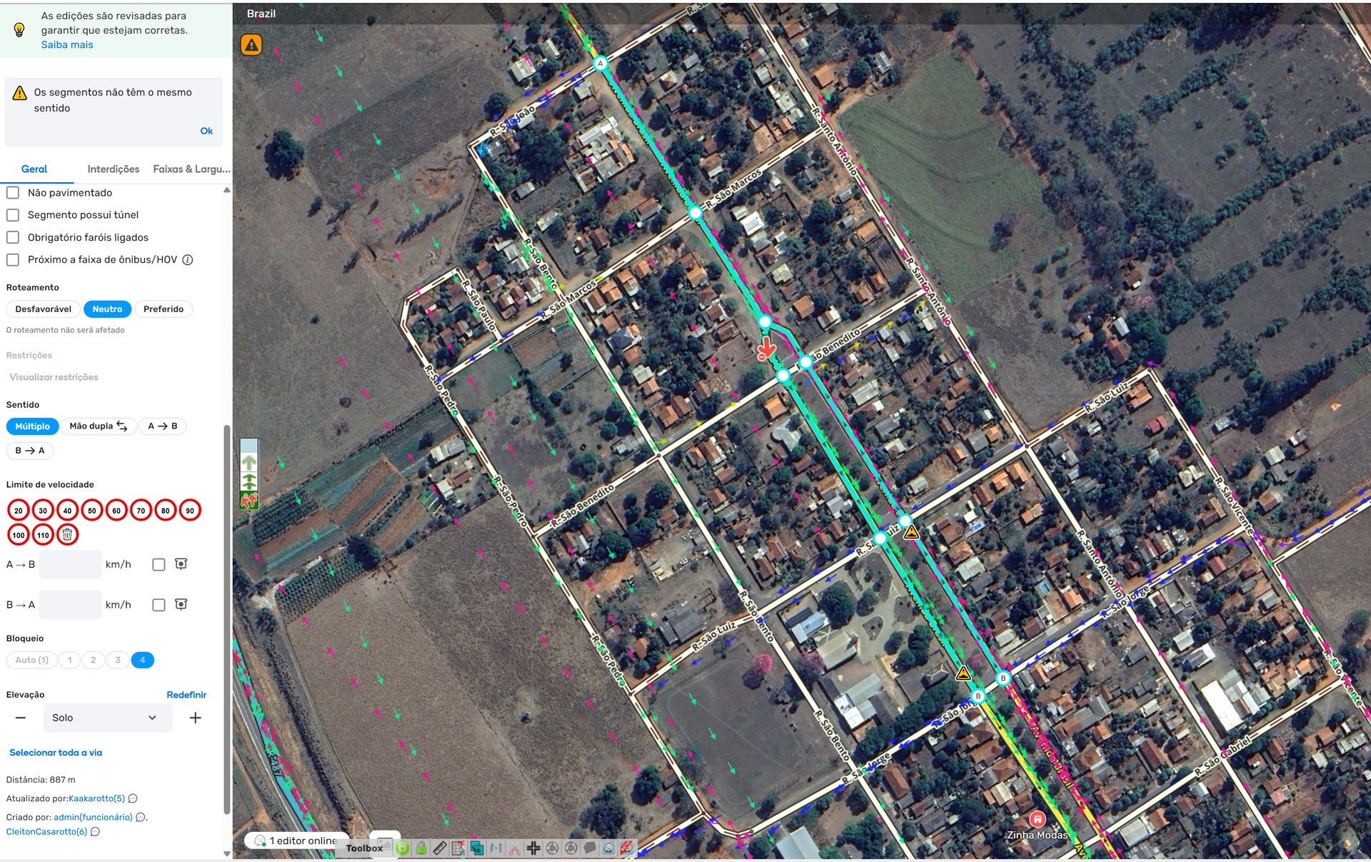 Olá amigos, gostaria de solicitar o desbloqueio desses segmentos cujo estão em nível 4 agora, não vejo o motivo para eles estarem nesse bloqueio, creio que nível 2 ou o automático já seja suficiente. Preciso para colocar algumas lombadas faltando lá.