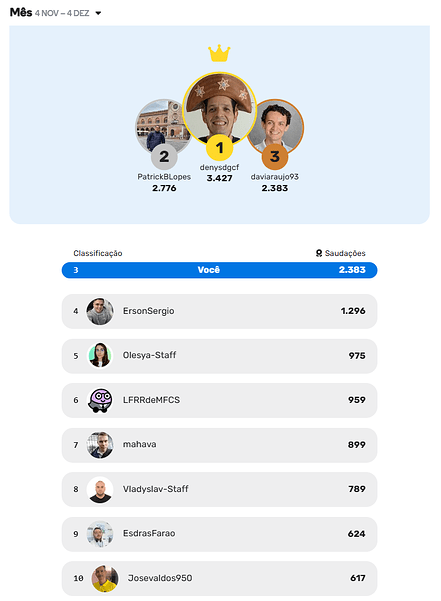 Mas o que nem todo mundo sabe é que temos um ranking próprio e emblemas (badges) que são concedidos por se envolver com a comunidade aqui no fórum, seja acessando, curtindo ou postando.