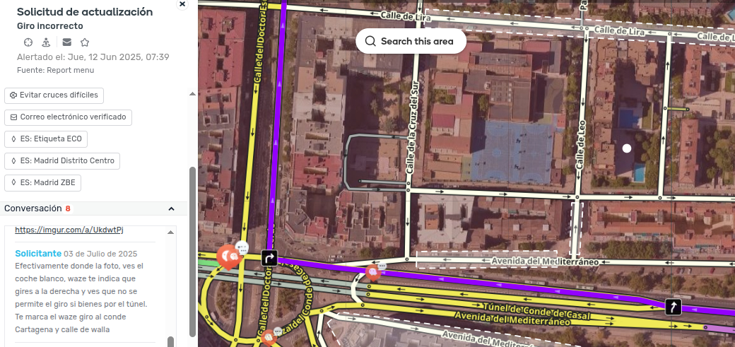 ¡Hola! Gracias por echarle un vistazo, llevaba tiempo ofuscado con esa intersección. Yo también creo que el problema es que entran por el túnel y Waze cree que han ido por el lateral.