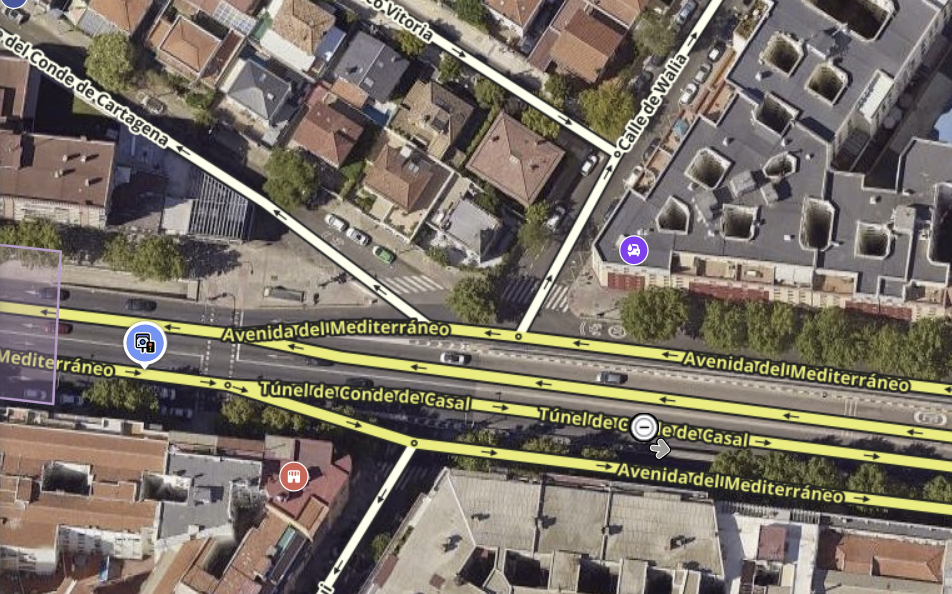 Lo que venía a comentar es algo que creo que está dando lugar a muchos URs. Al entrar desde la A3, muchos conductores entran al túnel para ir hacia Mariano de Cavia, pero Waze piensa que van por fuera, y les sugiere girar a la derecha… Un UR era porque el giro hacia Conde de Cartagena es viable, pero saltando una isleta.