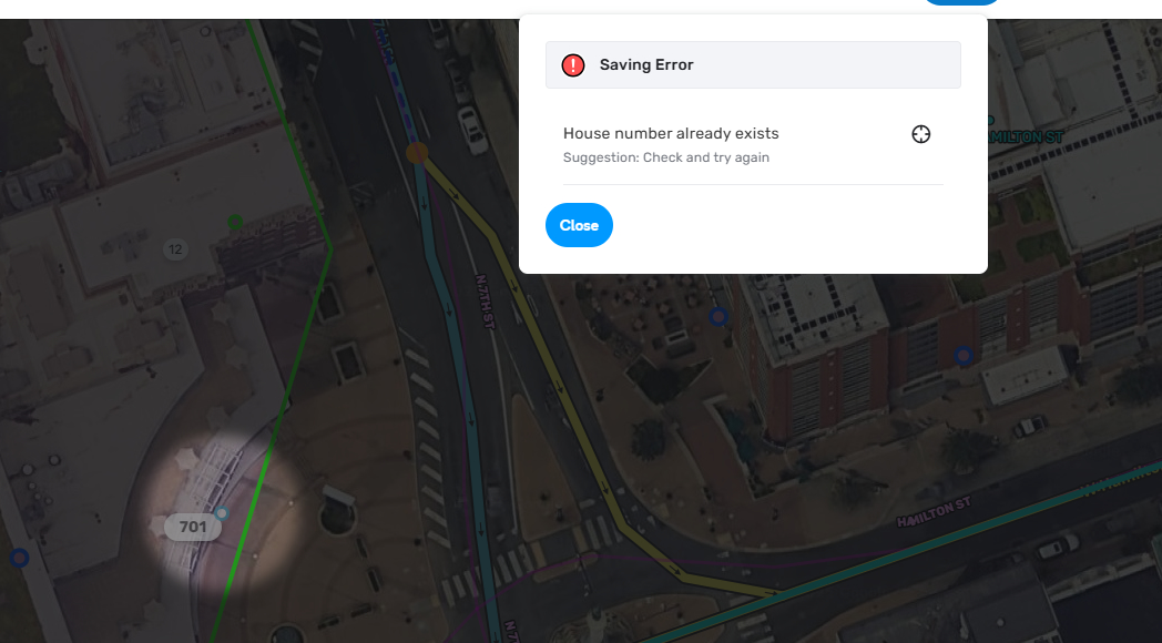 Find - delimited House Number. Change it to a single Number HN attempting to save it some times fail. In addition the HN will leave the old one in place.