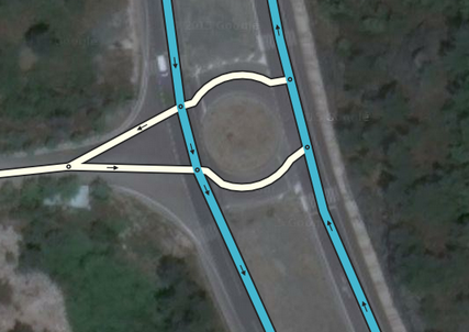 A special kind of road type is the roundabout. You cannot find them in the list of road types, but you need to draw (add link) them separately. Roundabouts, rotaries, or traffic circles, are unique segments in the Waze routing engine. When a driver approaches a roundabout segment, a specific icon is displayed in the turn direction area of the display with a number corresponding to the exit count from the driver’s entry into the roundabout. Manually creating a circular road will not tell Waze to navigate the area as a roundabout. A roundabout gives you instructions like: “On the roundabout, take the 3rd exit” or, “On the roundabout, go left” depending on the way of drawing. A roundabout should be assigned the same road type of the highest classified, ongoing connected road.
