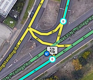 - Function: To show on-map icons where traffic lights are and a navigation aid (turn instructions).
