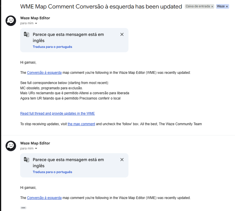 Gostaria de informar que foi realizada uma série de correções de tradução no menu do rastreador de problemas do WME. Algumas ainda apareciam somente em inglês, e outras foram ajustadas a pedido do Waze.