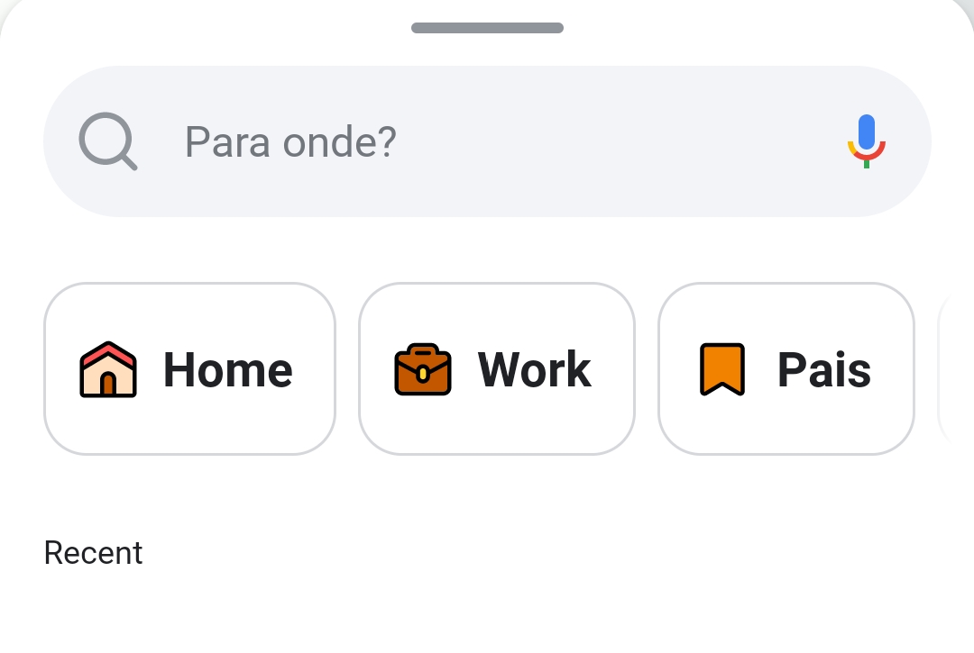 No Android não estam traduzidas as palavras Casa, Trabalho e Recentes na tela inicial do app.