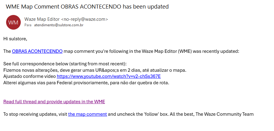 A mensagem final da pesquisa de satisfação do 2º semestre 2025 do Waze não está traduzida: