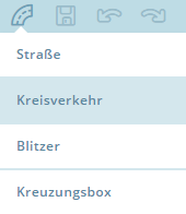 Bewege den Mauszeiger über das grosse + Icon auf der rechten Seite in der Werkzeugleiste und wähle “Kreisverkehr” aus. Du kannst auch das Tastaturkürzel “o” verwenden.